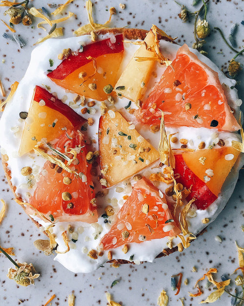 - Top with hemp seeds, bee pollen and dried dandelion petals.