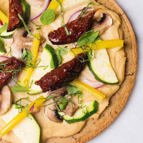 Hummus and veggies and pizza – Oh My! Use hummus as a tasty base for your pizza creations using Mikey’s Pizza Crust. A tip from Mikey: Use hummus as a simple substitute for traditional pizza sauce to change things up while keeping your pizza low cal and paleo. Don’t forget to tag us on social media using @mikeys and #madewithmikeys to show us how you recreated one of Mikey’s favorites!