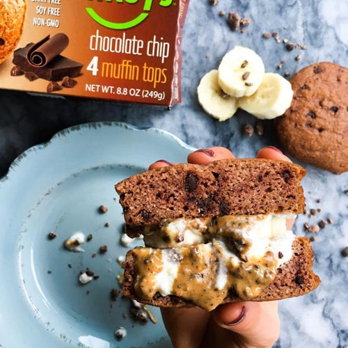 Be honest. You’ve never even thought about making a chocolate chip muffin sandwich. Neither did we, until we came up with this idea. Now, we make them all the time, because they are so good…and good for you. A tip from Mikey: Put the muffin top on tin foil or parchment paper on a baking sheet, and bake in the oven at 350F for 5-8 minutes. That will warm it up just enough to get the chocolate chips all melty and gooey and super delicious. Show us how you ‘which by tagging @mikeys and don’t forget to add #madewithmikeys !