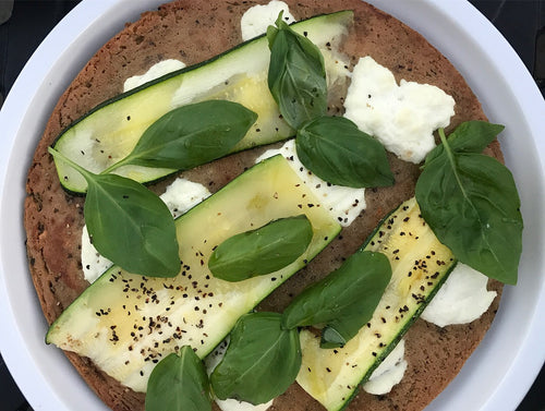 - Add cashew ricotta, grilled zucchini, fresh basil and then broil for 2-5 minutes or until crisp.